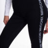 Priliehavé nohavice z elastického materiálu s elastickým pásom a značkovou páskou na boku.