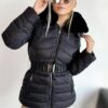 Stredne dlhá vetrovka z prešívaného materiálu, zapínanie na gombíky, tvarovaná, opasok z rovnakého materiálu, logo značky na chrbte.