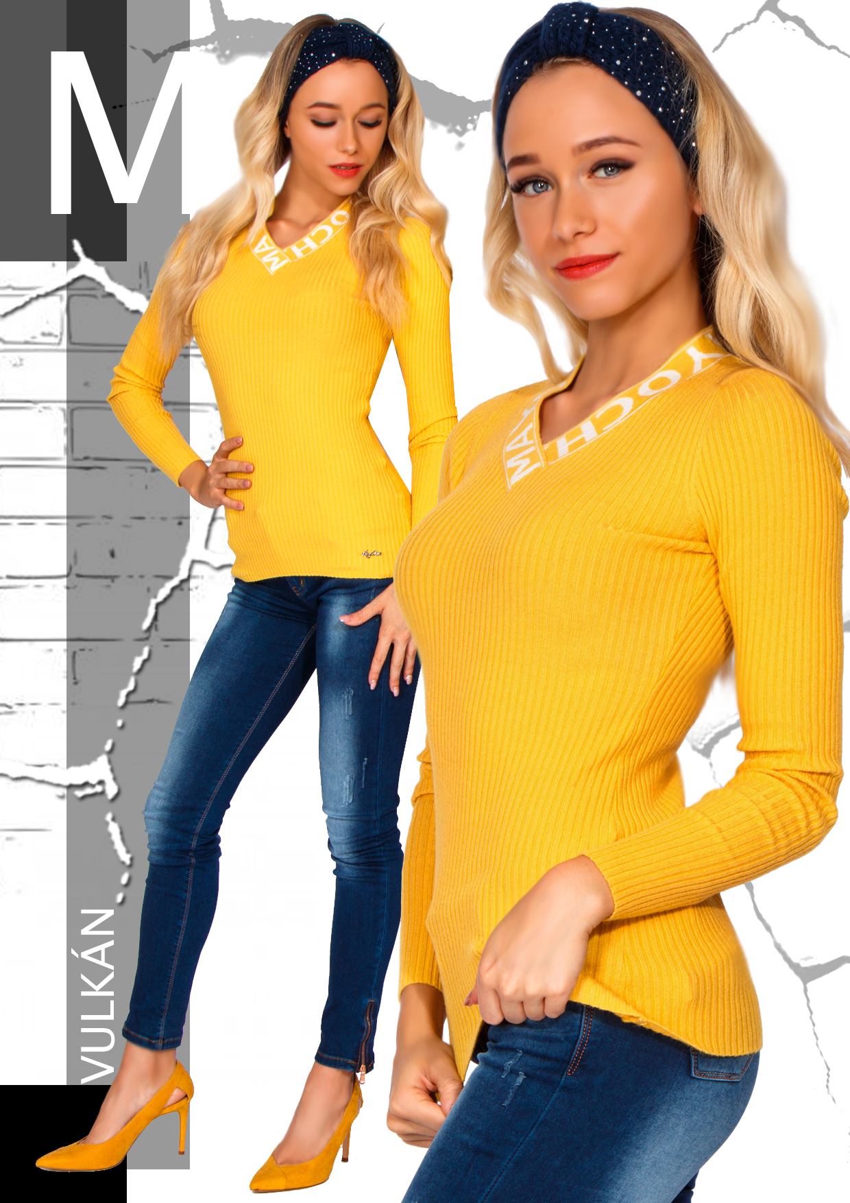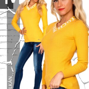 Z elastického, rebrovaného úpletu, sveter s výstrihom do V s pleteným vzorom v materiáli, drobná kovová značka.