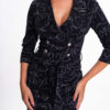 Úzke šaty z elastického materiálu s potlačou po celej ploche, so šnurovacím zapínaním na hrudi a malým kovovým logom značky.