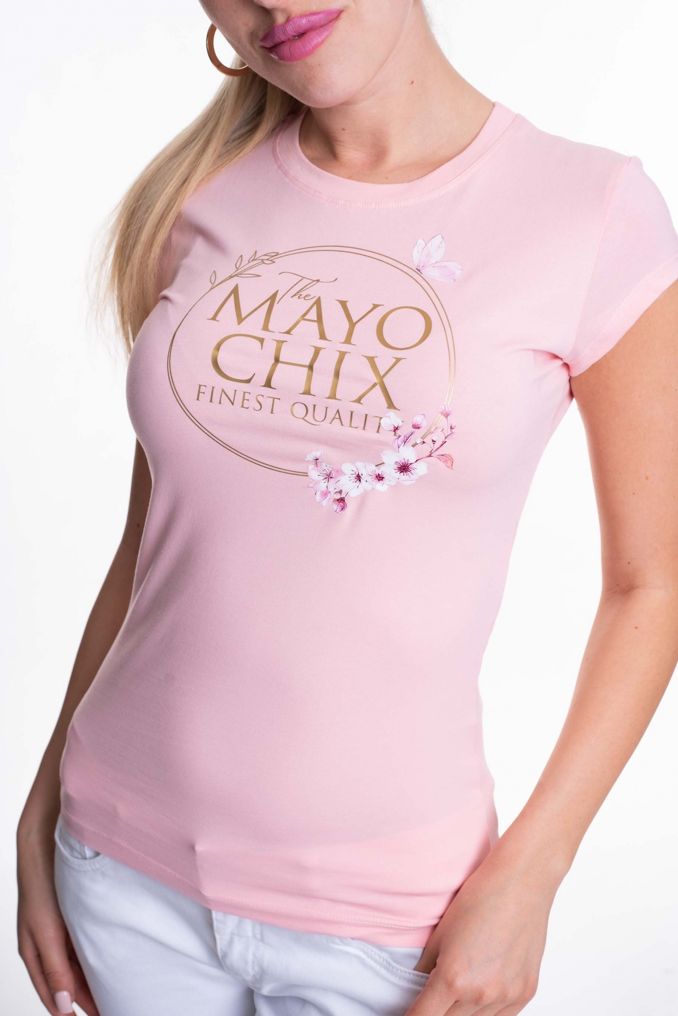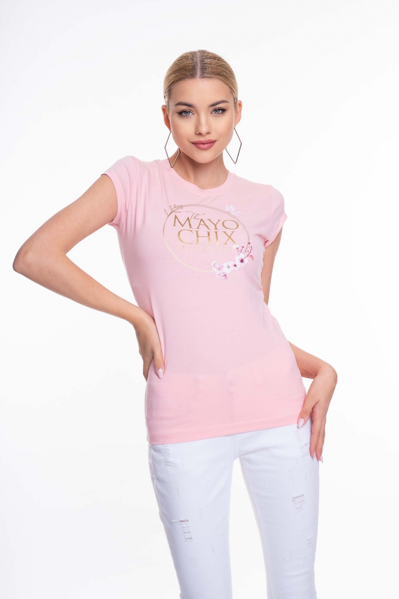 Športové tričko z elastického bavlneného materiálu, zdobené potlačou.