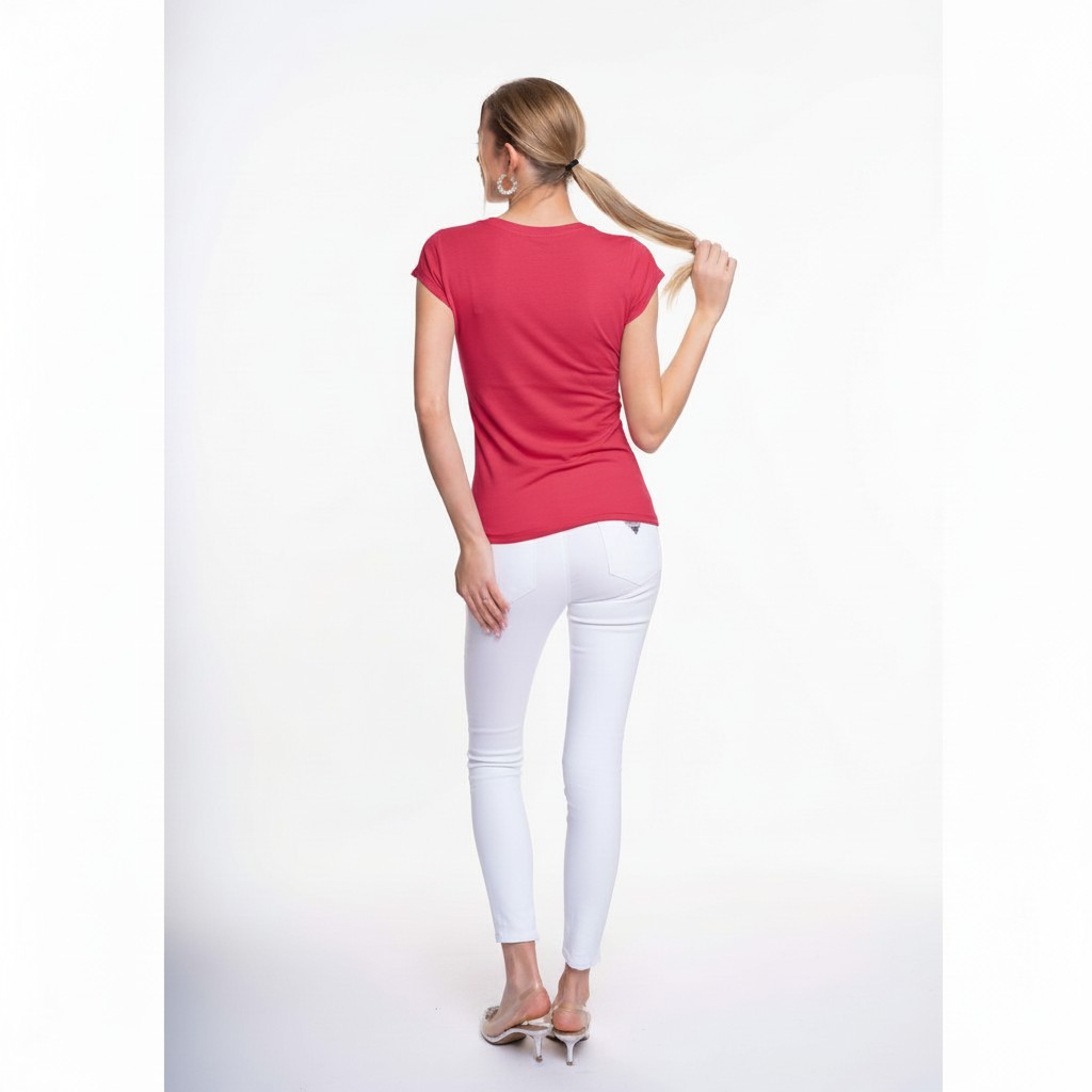 Športový top z elastického bavlneného materiálu s ozdobnými kamienkami.