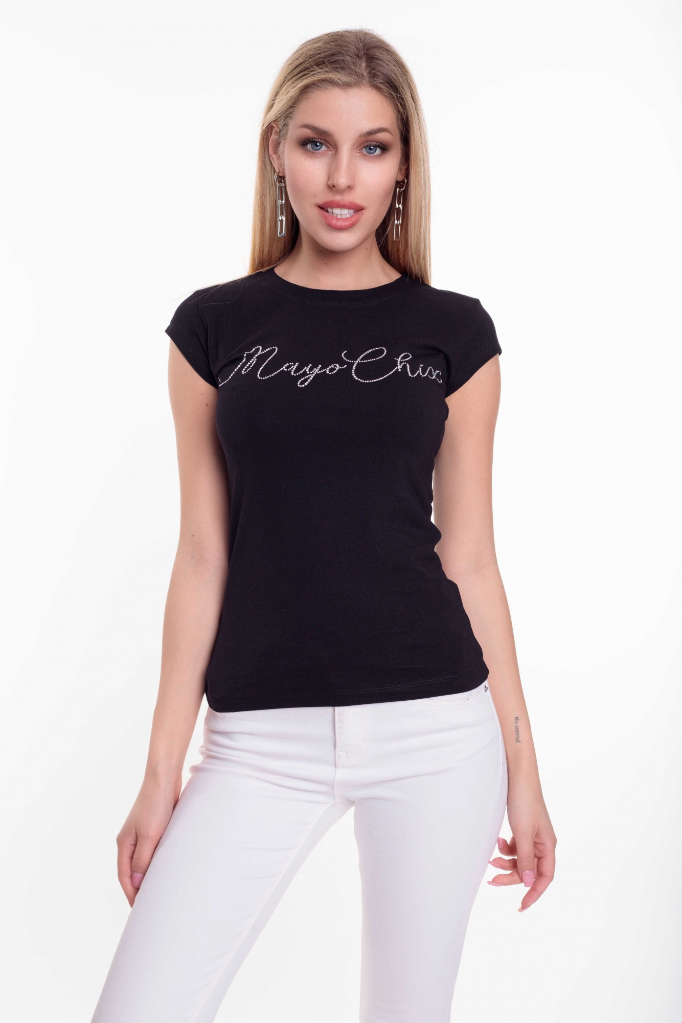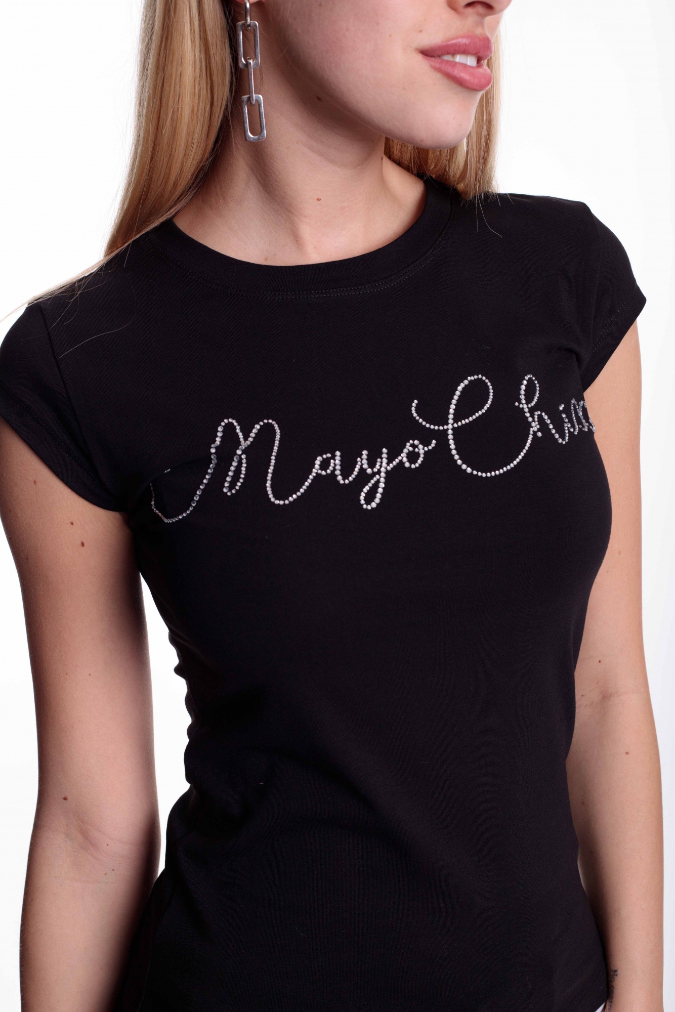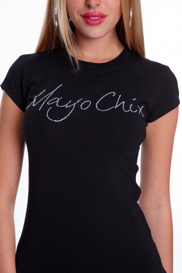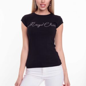 Športový top z elastického bavlneného materiálu s ozdobnými kamienkami. Tvar písma sa môže líšiť od písma na fotografii,