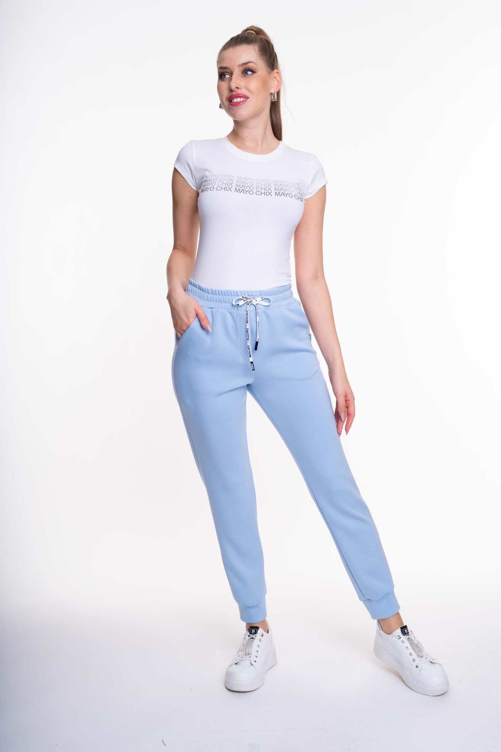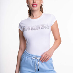 Športový top z elastického bavlneného materiálu s ozdobnými kamienkami.