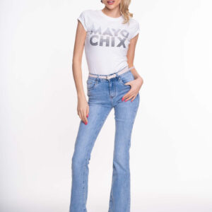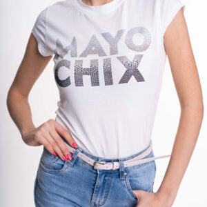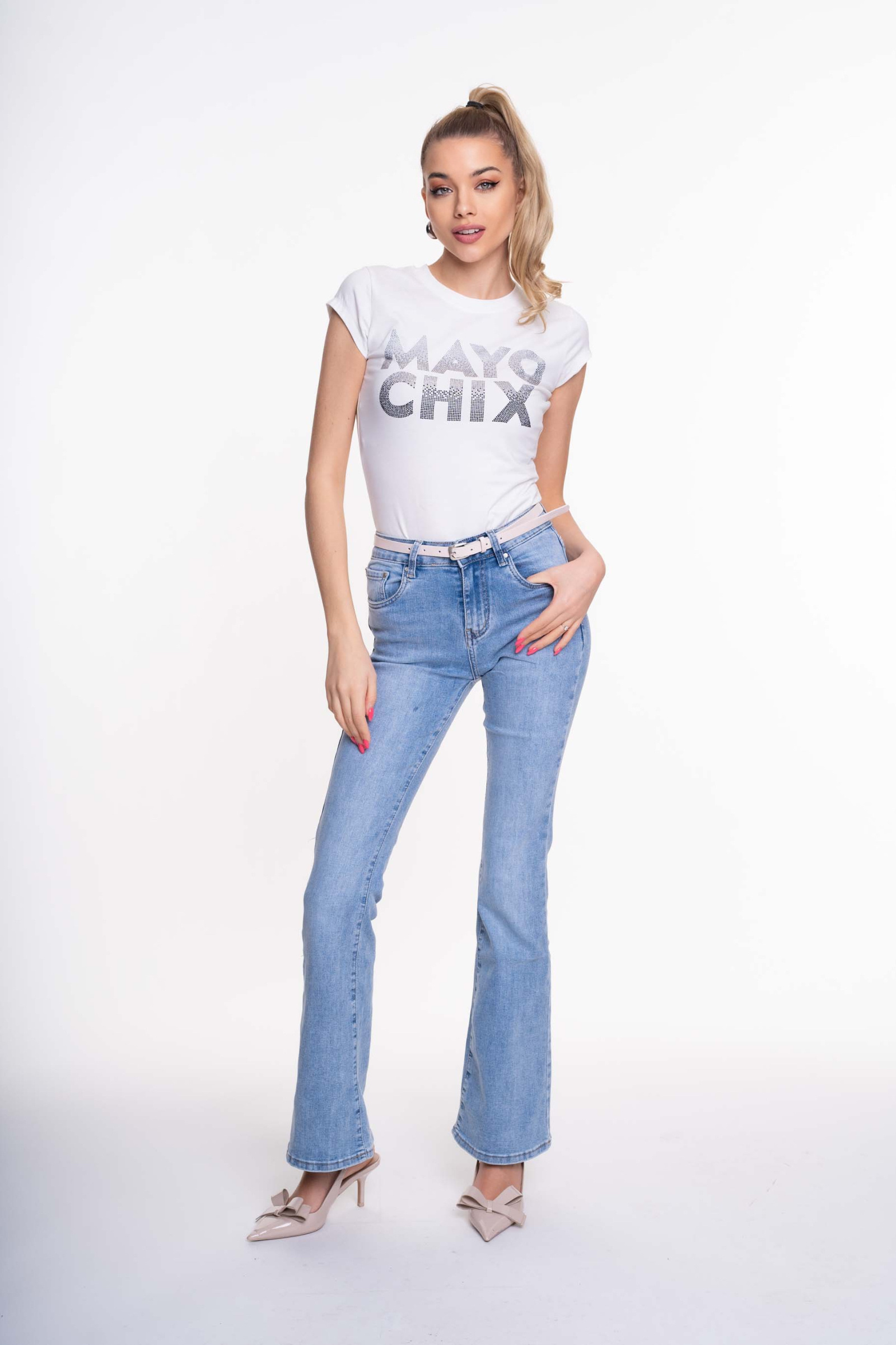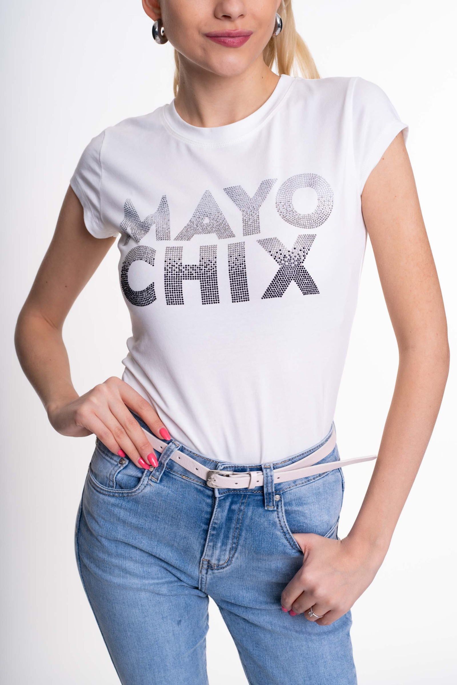 Športový top z elastického bavlneného materiálu s ozdobnými kamienkami. na fotografii,