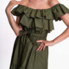 Volánové šaty z pevnej látky s gumou, asymetrickým lemom, zaväzovaním a malou kovovou visačkou.